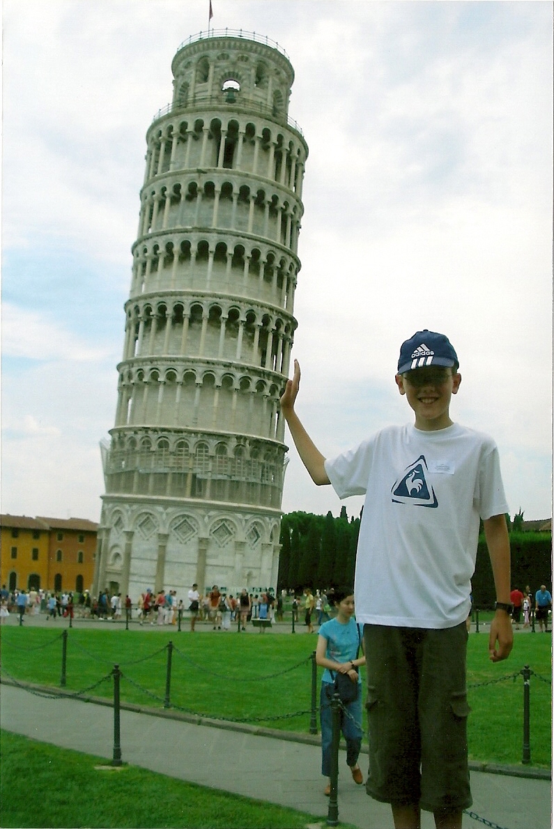 Got up, had breakfast, saw Pisa and I climbed up the tower of Pisa. Me and Mum got really dizzy because it was leaning! We saw the huge baptistry and the huge church. Got back to boat, had lunch, I hardly ate it because I was exhausted. Had sleep in room, played gameboy at poolside. Did quiz, we came second but mum and dad had a fight. There was the first rain of the holiday but it came with a thunderstorm. Saw chat show hosted by Fogwell Flax talking to Colleen Nolan! He was really funny and so was she.